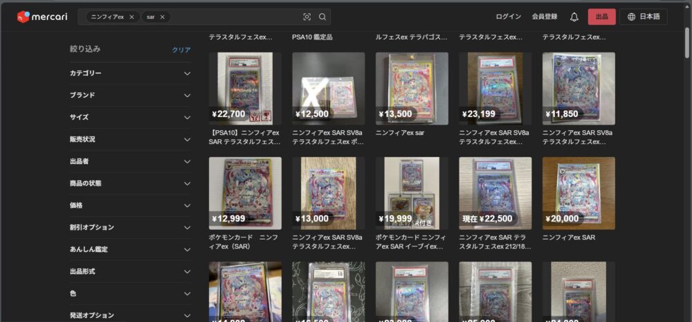 テラスタルEXの大量販売・再販によりニンフィアex SARの流通枚数は圧倒的に多く