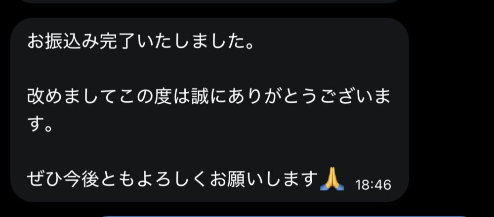 その時の多忙さで変動はあるかと思いますが著者は了承後10分程度で振り込んで頂けました。