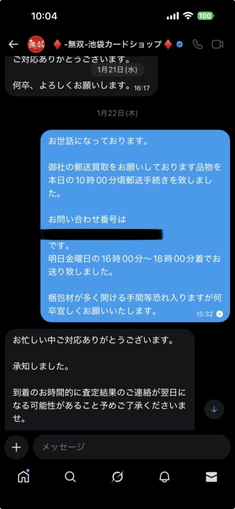 店舗に追跡番号と到着予定を伝えて後は査定後の連絡を待つだけ!